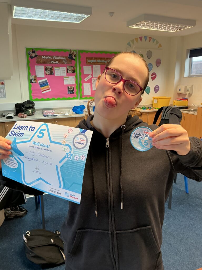 Over the past year, students have been working towards their Swim England badges through weekly swimming lessons every Monday. They have shown excellent commitment, resilience, and determination during each session, consistently working hard to develop their swimming skills and water confidence.